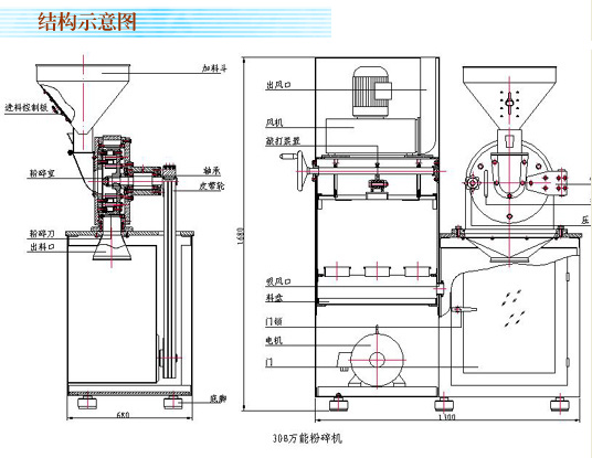 30BIV.V.VI 100-300kg/h 3800r/min 10mm 60-120目 5.5KW 1.5KW 1200×650×1650